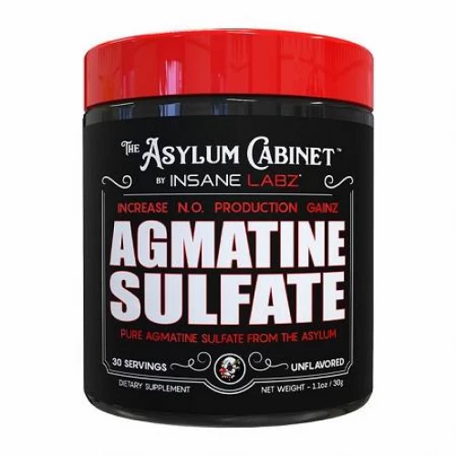 Insane Labz Agmatine Sulfate je nejčistší forma agmatinu dostupná na trhu. Jedna dávka přípravku obsahuje 1 gram čistého agmatinu v patentované formě Agmapure. Vysoce čistý agmatin sulfát vzniká přirozeným biologickým procesem. Insane Labz Agmatine Sulfate zvyšuje ukládání glykogenu a zvyšuje zadržování vody ve svalech. Přípravek zvyšuje hladinu oxidu dusnatého (NO) a zintenzivňuje pocit napumpování svalů žádaný sportovci při silovém tréninku.