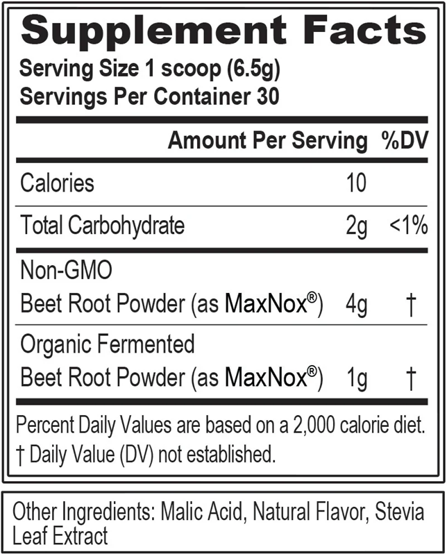 Když na sebe v posilovně nebo venku vyvíjíte tlak, čím více se snažíte, tím více se hladina kyslíku v těle stává limitujícím faktorem. Jakmile dosáhnete svých limitů, tělo začne spotřebovávat kyslík ve svalech a začne se hromadit kyselina mléčná a vaše svaly začnou pálit, jak se unaví a odevzdají. Vytvoření většího množství kyslíku ve svalech zvýšením průtoku krve a oxidu dusnatého může pomoci prodloužit vytrvalost a svalovou sílu, což umožní více opakování a sílu překonat předchozí limity. BEET MODE je navržen tak, aby fungoval rychleji než šťáva z červené řepy nebo celá řepa, a navíc neobsahuje stimulanty, takže ho můžete kdykoli použít jako palivo pro své výsledky.
