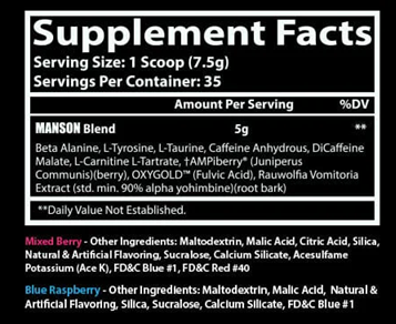 DARK ENERGY FOR YOUR SOUL - Manson je vytvořen tak, aby posunul vaše cvičení až na absolutní hranici. Díky extrémnímu mentálnímu soustředění je Manson nejlepší volbou každého předtréninkového produktu.