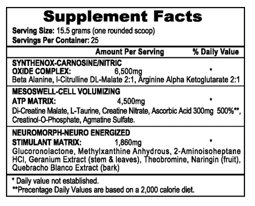 Mesomorph® provedl výzkum a shromáždil data, aby představil dvě nové složky silového úderu pro bezkonkurenční výsledky s novou, vědecky ověřenou energetickou složkou. Tato složka je často nazývána "napodobeninou efedrinu" díky svým úžasným energetickým vlastnostem a tato nová složka s ochrannou známkou brzy způsobí revoluci na trhu s předtréninkovými přípravky.