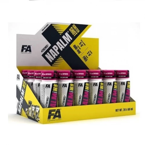 Fitness Authority Xtreme Napalm Igniter Shot je rychle se vstřebávající tekutý předtréninkový přípravek ve formě praktického šlehu. Vyznačuje se vysokým obsahem kofeinu, který v kombinaci s dalšími synergicky působícími složkami, jako je beta alanin, taurin a glukuronolakton, maximalizuje vaše tréninkové výsledky. Přidaný syrovátkový izolát dále zvyšuje účinek předtréninkové dávky. Napalm Igniter Shot neobsahuje cukr ani kreatin!