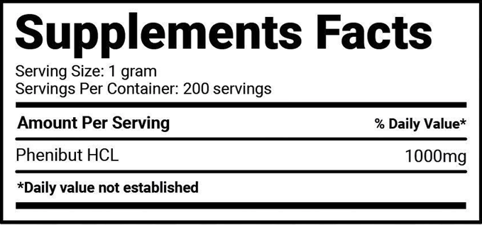Fenibut HCL - 1000 mg - chemická látka, která je derivátem GABA, která má inhibiční, relaxační a uklidňující účinky na nervovou soustavu. Fenibut byl objeven v 60. letech 20. století v Rusku vědci, kteří rozpoznali jeho nootropní vlastnosti. Byl hojně využíván mimo jiné v armádě k podpoře kognitivních funkcí. Nejčastěji se používá jako doplněk stravy na podporu regenerace, zlepšení pohody, zlepšení kondice a kvality spánku a zlepšení kognitivních funkcí. Fenibut navíc zlepšuje okysličení a výživu mozku, čímž zvyšuje jeho výkonnost.