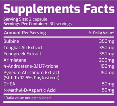 Bulbine - 350 mg - testosterone booster, aphrodisiac, studies have shown that it can not only increase testosterone levels, but also support libido and overall vitality of the body. This ingredient works by activating enzymes that support testosterone synthesis while regulating cortisol levels, which promotes hormonal balance.