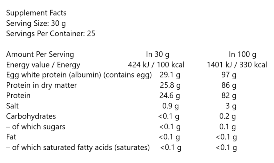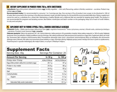 Proto je vaječná bílkovina považována za zlatý standard ve sportovní výživě - její aminokyselinové složení je podobné standardu WHO. Pravidelné zařazování albuminu do stravy podporuje regeneraci po tréninku, doplňuje nedostatek bílkovin a udržuje správnou strukturu svalů, kůže a pojivové tkáně.