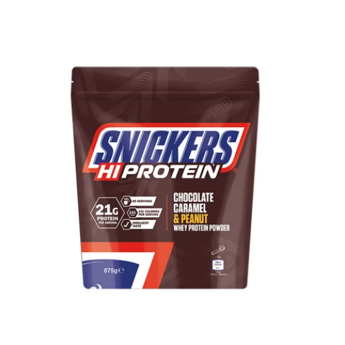 Snickers Hi Protein Powder je lahodný syrovátkový protein s nezaměnitelnou chutí světoznámé tyčinky Snickers. Nové složení má ještě bohatší a krémovější chuť, která je téměř identická s oblíbenými tyčinkami. Nyní si můžete bez výčitek vychutnat tyčinku Snickers v podobě tohoto proteinu. Snickers Hi Protein Powder obsahuje až 20,9 g vysoce kvalitních, rychle vstřebatelných bílkovin v jedné porci, které pomáhají růst a udržovat svalovou hmotu a udržovat zdravé kosti.
