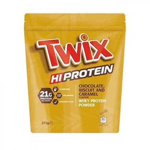 Twix HiProtein Powder je lahodný syrovátkový protein s nezaměnitelnou chutí světoznámé tyčinky Twix. Nové složení má ještě bohatší a krémovější chuť, která je téměř identická s oblíbenými tyčinkami. Nyní si můžete Twix vychutnat bez výčitek v podobě tohoto lahodného proteinu. Twix HiProtein Powder obsahuje až 20,7 g na jednu porci kvalitních, rychle vstřebatelných bílkovin, které přispívají k růstu a udržení čisté svalové hmoty a zdravých kostí.