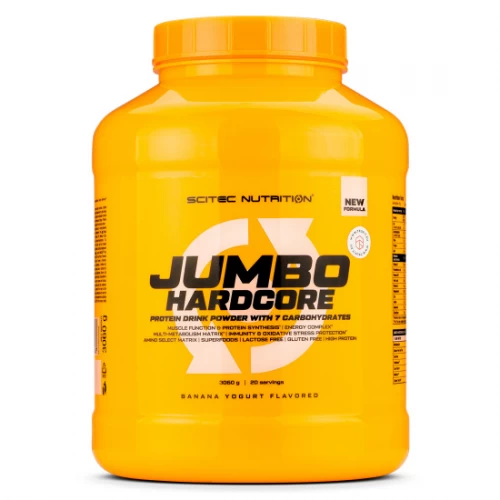 Jumbo Hardcore pomáhá těm, kteří chtějí přibrat, dosáhnout kalorického nadbytku. Poměr bílkovin a sacharidů ve výrobku je: 60 g sacharidů, 63 g bílkovin a 14 g tuků v jedné porci, což výrazně zvyšuje množství makronutrientů přijímaných v denní stravě.