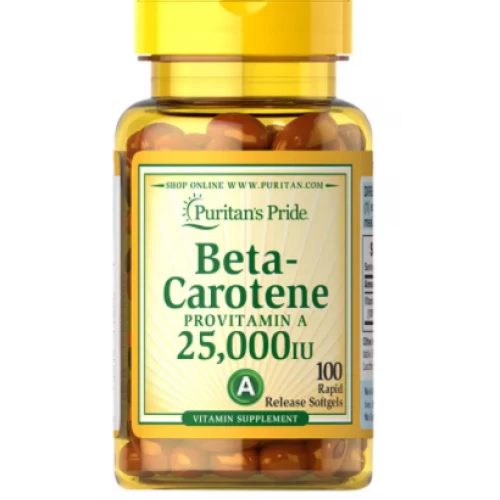 Betakaroten 25000 IU je provitamín A, který se nachází v řadě druhů ovoce a zeleniny a je známý tím, že dává mrkvi sytě oranžovou barvu.