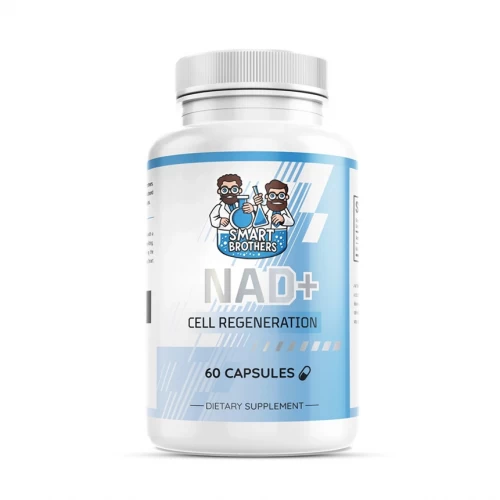 Smart Brothers NAD+ nabízí komplexní podporu pro udržení dlouhověkosti! NAD+ je malá, ale výkonná molekula, která je přítomna v každé buňce vašeho těla. Představte si ji jako palivo pro stovky procesů, které vás udržují ve formě. Z chemického hlediska je to koenzym, který pomáhá přeměňovat potravu na energii, opravuje poškozenou DNA a chrání před škodlivými vnějšími faktory. Bez dostatečného množství NAD+ vaše buňky ztrácejí výkonnost, což se projevuje únavou, pomalejší regenerací a celkovou slabostí. Nyní tomu však můžete úspěšně předcházet a podpořit svůj organismus pomocí doplňku stravy NAD+ od společnosti Smart Brothers!