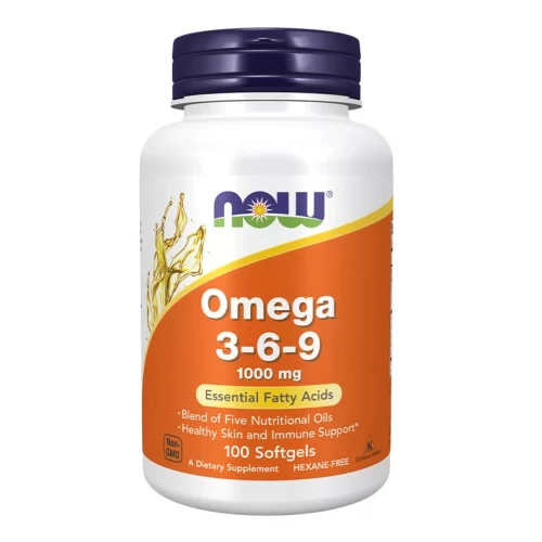 Omega 3-6-9 je směs lněného, pupalkového, řepkového, oleje z černého rybízu a dýňového oleje. Společnost NOW kombinuje tyto známé výživové oleje tak, aby vytvořila vyvážený poměr omega-3, omega-6 a omega-9 mastných kyselin. Omega-3, kyselina alfa linolenová (ALA), a Omega-6, GLA, hrají důležitou roli při udržování zdravé pokožky a funkce imunitního systému.*